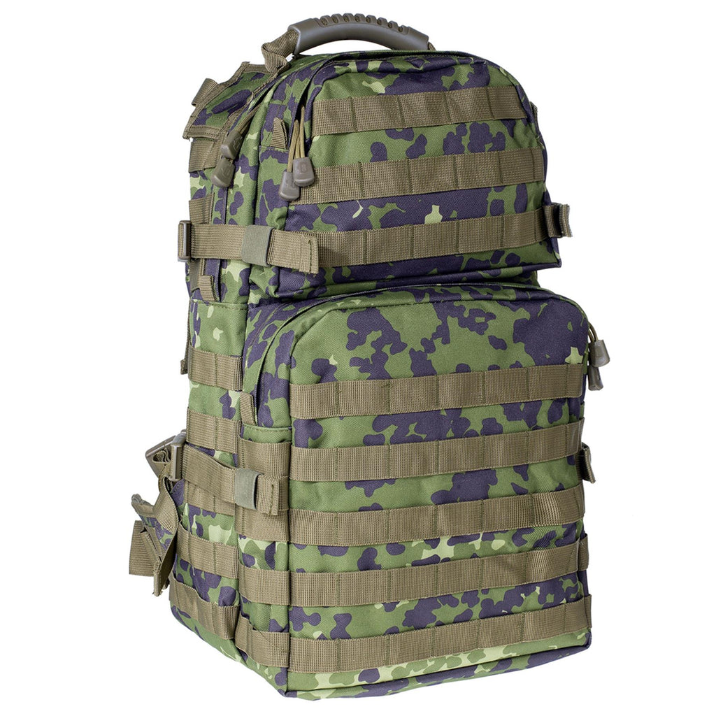 Comfort is prioritized with a padded back, shoulder straps, and hip belt, allowing for extended wear without sacrificing comfort. The tactical assault backpack is equipped with D-rings and Molle loops, providing versatile options for attaching additional tactical gear and accessories, making it adaptable to various situations and needs. Also backpack is made with M84 Danish camouflage that helps to hide in a bush or field.