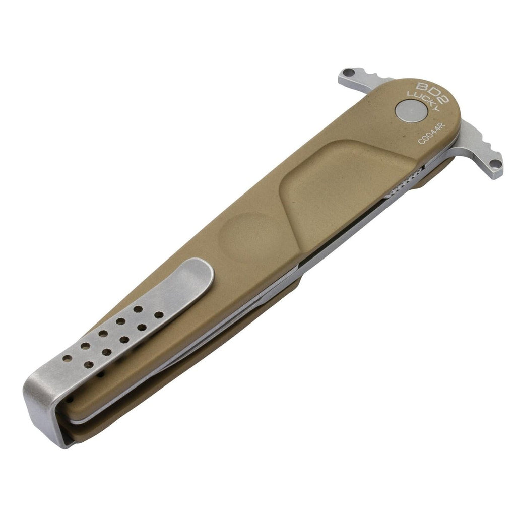 The ExtremaRatio BD2 LUCKY DESERT folding knife is a reliable and high-performance pocket knife designed for tactical and everyday use. Its plain edge N690 Bohler steel blade offers exceptional sharpness, edge retention, and durability.