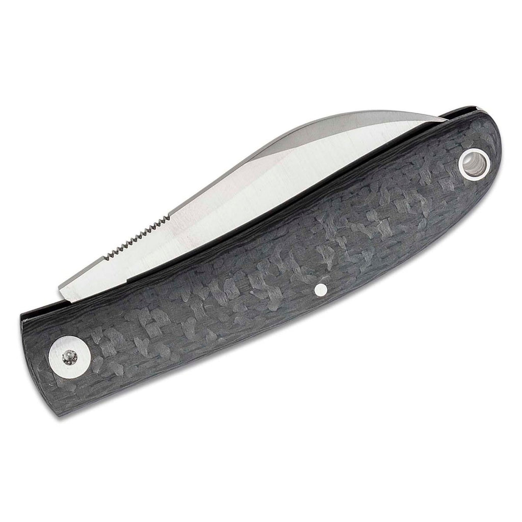 • The carbon fiber handle provides a lightweight, ergonomic, and secure grip. It ensures comfort and control whether you use the knife for small tasks or demanding projects. Its sleek, modern design adds style without sacrificing performance.