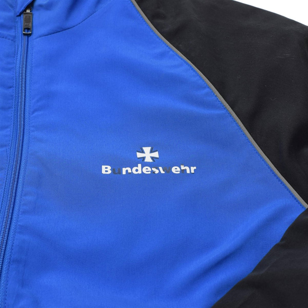 - Designed with a high collar for added protection against wind and weather, this jacket combines functionality with style. Its striking blue and black color scheme, accented by reflective piping and the Bundeswehr logo. Adds authenticity and visibility to your look.