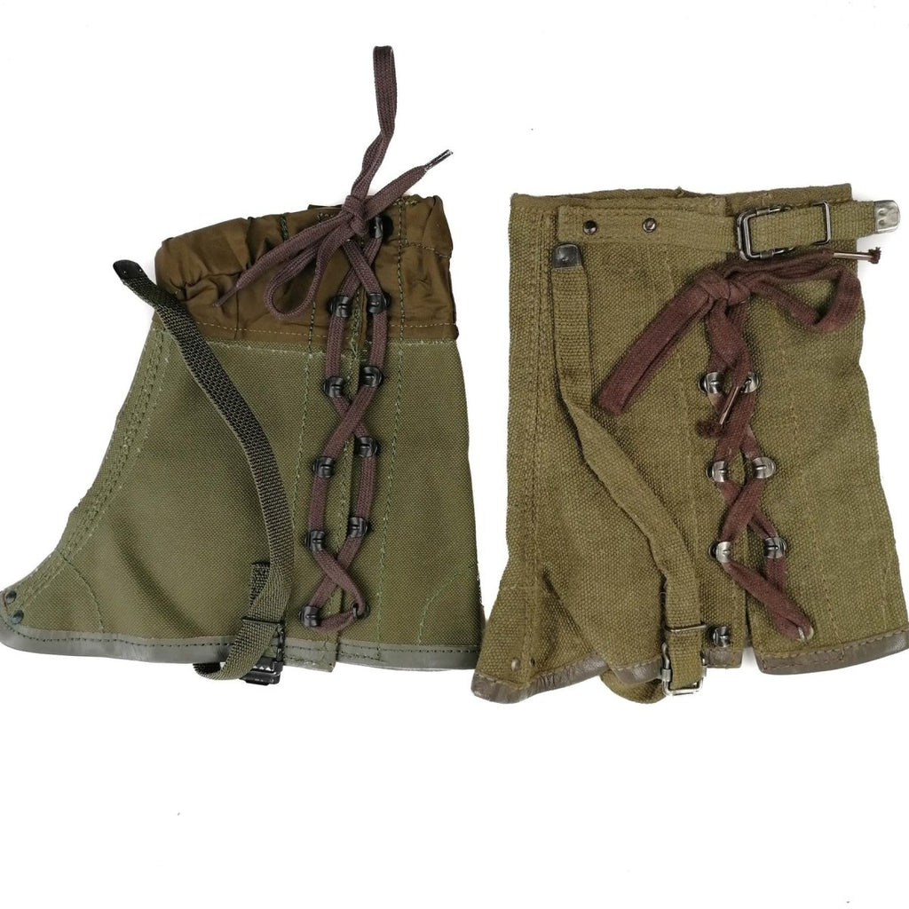 Original vintage Italian military canvas gaiters in olive color are a type of protective gear that were originally used by the Italian military. They are made from durable canvas material in an olive color and are designed to protect the legs and feet from water, snow, and debris. These gaiters typically lace up the front and have straps that go around the calf and ankle to secure them in place. Military canvas gaiters are often worn over boots or shoes, making them ideal for outdoor activities such as hiking, hunting, or camping. They have a vintage look and feel, and are becoming popular among collectors and enthusiasts of military gear.
