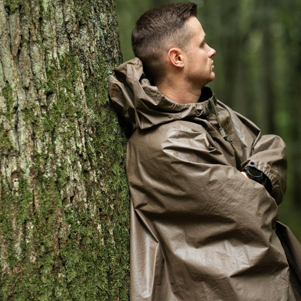German army wet weather Rain poncho waterproof olive hooded shelter cape