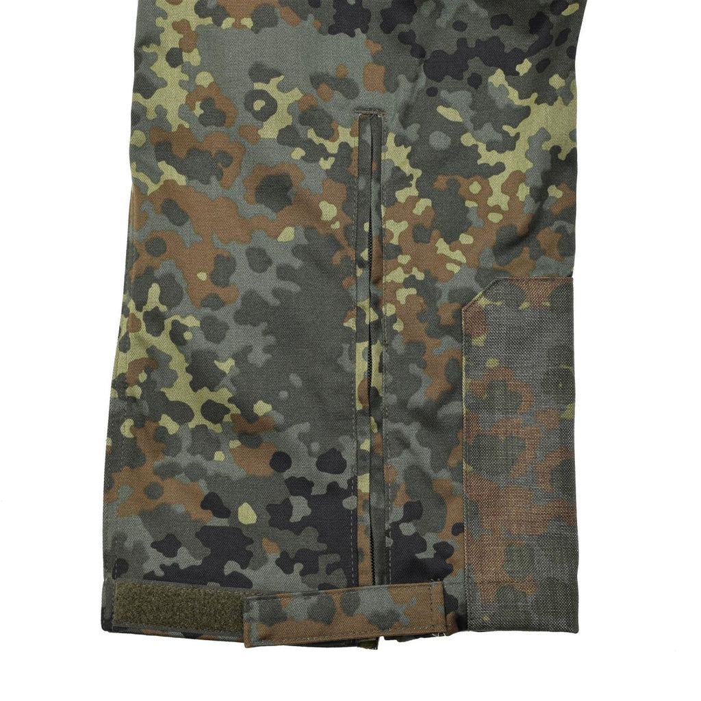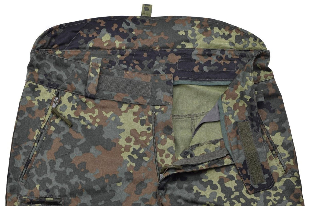 - The pants secure with a zipper closure and showcase a distinctive flecktarn camouflage pattern, ensuring optimal concealment in various outdoor environments. These features make the pants ideal for both tactical missions and outdoor adventures. The durable ripstop material withstands rugged conditions, making them a reliable choice for any demanding activity.