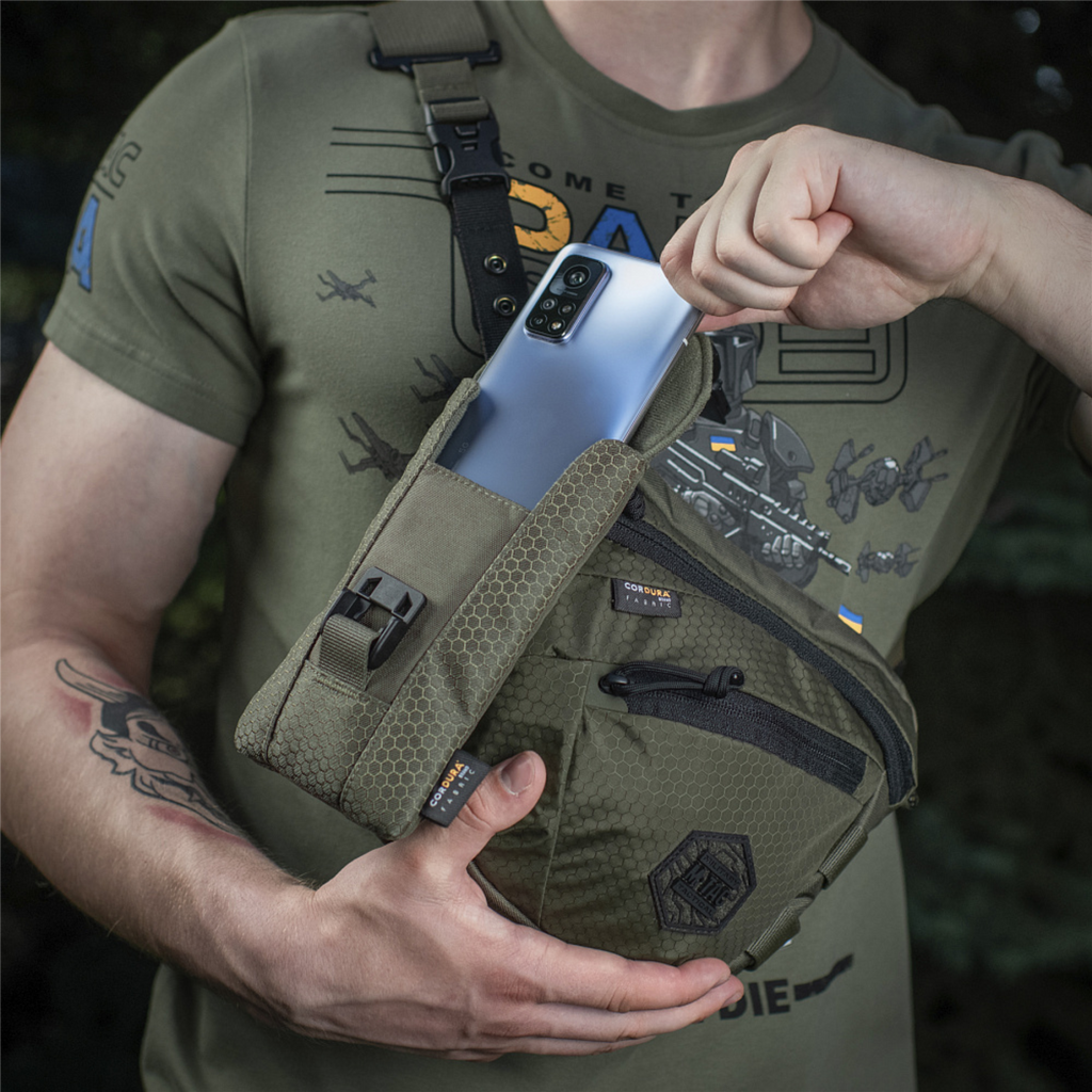 Constructed from high-quality Cordura fabric, the pouch offers excellent resistance to abrasion, wear, and harsh environmental conditions. The HEX reinforced structure enhances durability while maintaining a lightweight profile. The main compartment is designed to securely hold larger smartphones, keeping them stable and protected during movement.