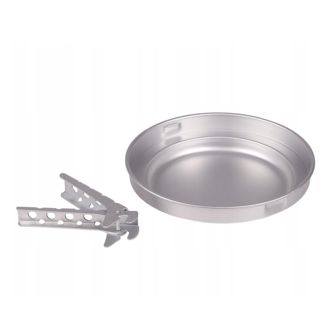 - This all-in-one set features two pots, a pan, and a brass burner. Offering everything needed for cooking during camping or hiking adventures. Crafted from lightweight aluminum, the pots and pan are easy to carry and maneuver.