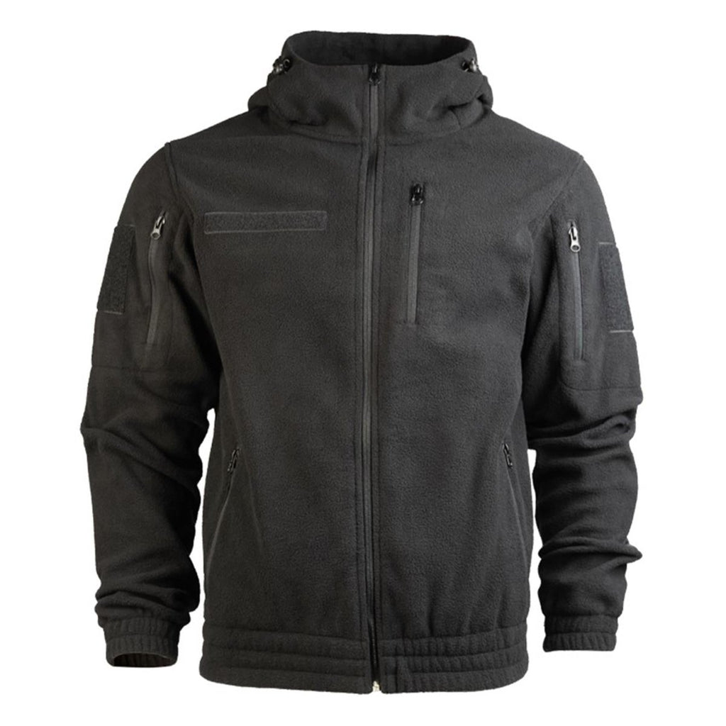 MIL-TEC GEN II Fleece Jacket Warm Reinforced Elbows Hood Chest Pocket Black
