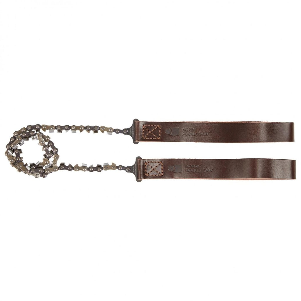 - The pocket chainsaw’s compact size makes it easy to pack. It takes up minimal space in your backpack while providing powerful performance when necessary. Heavy-duty nylon handles offer a comfortable and secure grip, even in wet conditions. This ensures you can handle the saw with ease during long cutting sessions. With the Nordic Pocket Saw, you will always have the right tool for outdoor jobs.
