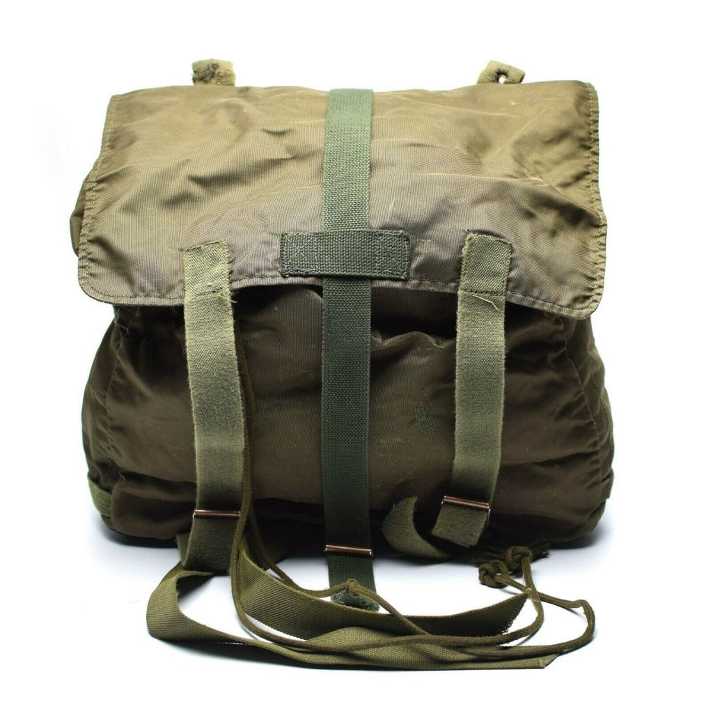 • Crafted as an authentic piece of Austrian military gear, this vintage daypack ensures quality and reliability. The olive green color enhances its military authenticity. making it suitable for various environments. Equipped with a secure buckle closure, it keeps your gear safe and easily accessible when needed.