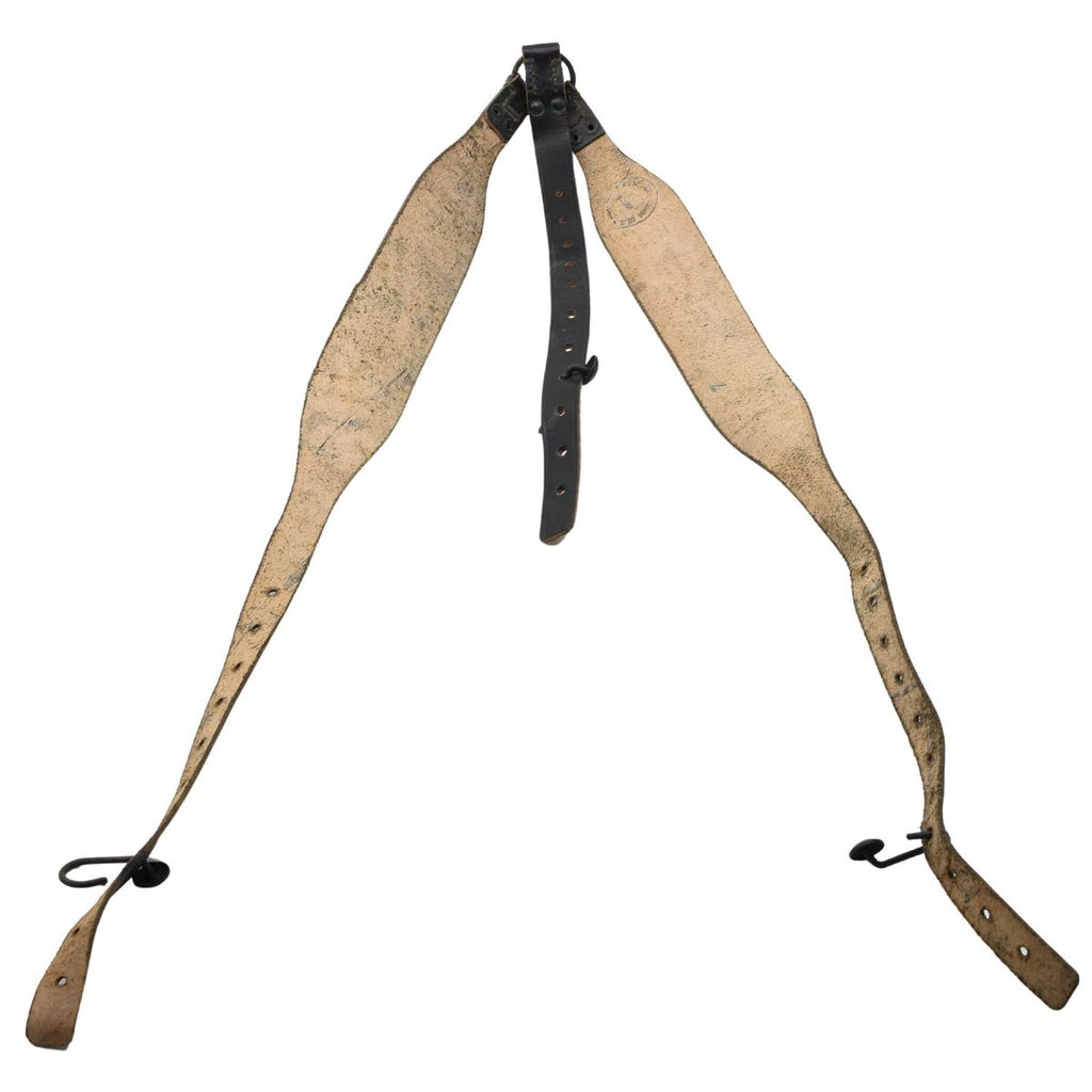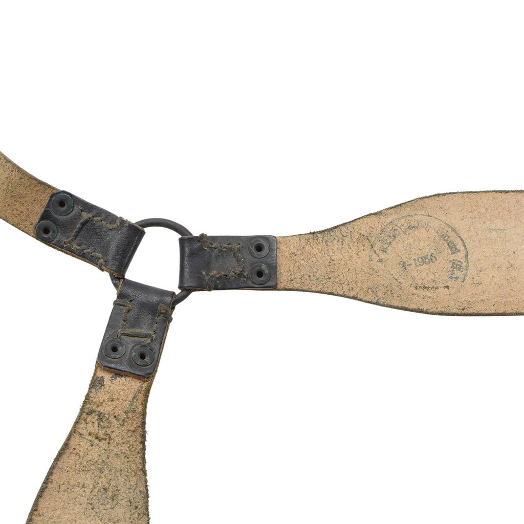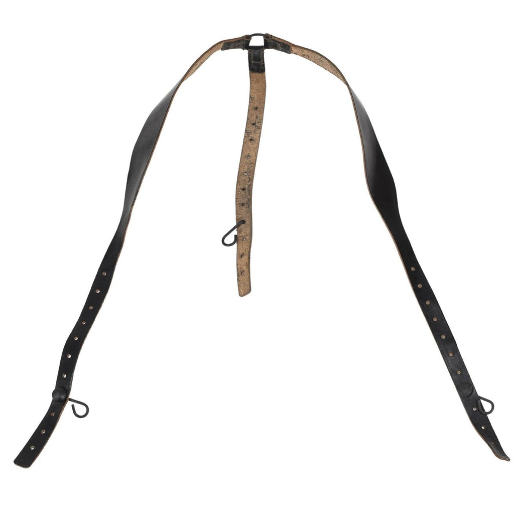 Original Austrian military leather suspender Y-strap adjustable black vintage