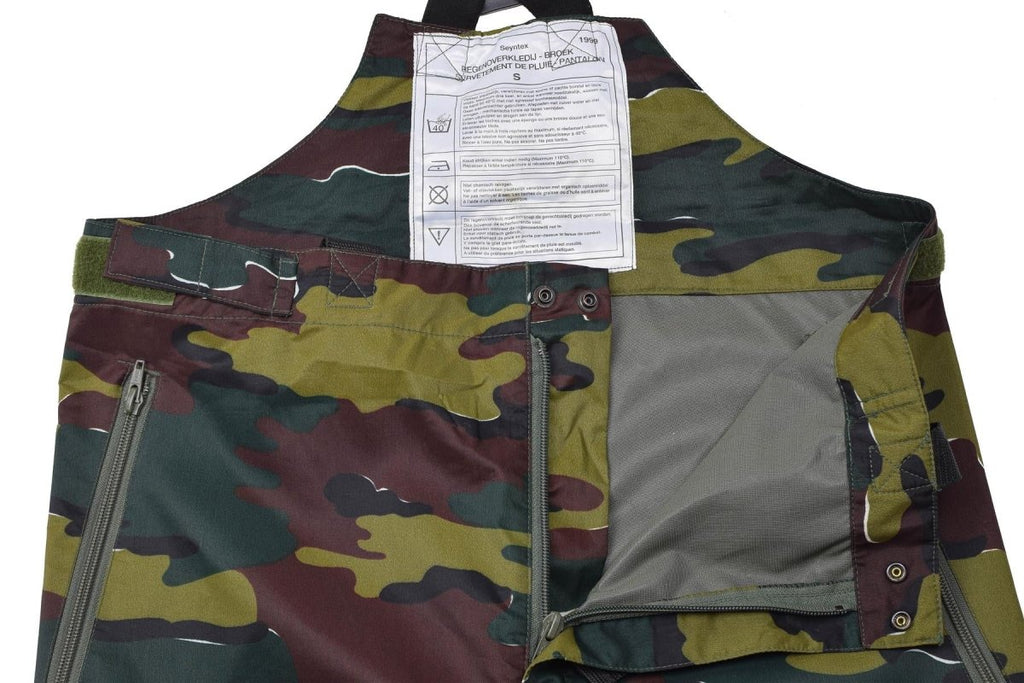 Belgian military waterproof pants in Jigsaw camouflage pattern are designed for protection against wet weather conditions. These pants feature suspenders for added comfort, ensuring they stay in place during rigorous activities. The Jigsaw camouflage pattern provides a unique and modern look while also helping to blend in with the surroundings. The pants are made from waterproof material, keeping you dry in wet conditions. The reinforced knees and multiple pockets provide durability and practicality, making these pants suitable for a range of outdoor and tactical activities. These pants are a must-have for anyone looking for a durable and functional pair of waterproof pants in a modern camouflage pattern.