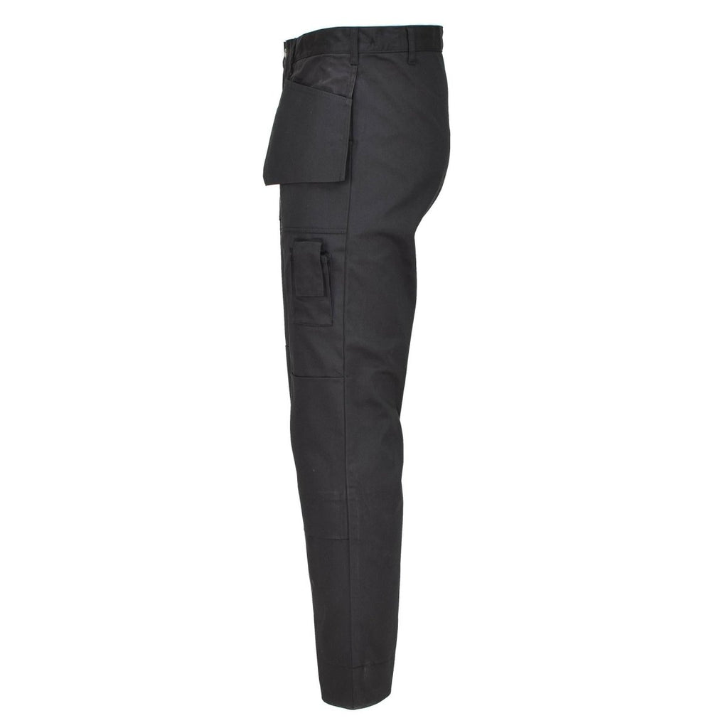 - In classic black, these loose workwear pants suit military needs, effortlessly concealing stains and dirt. Crafted from durable cotton or a cotton blend, they withstand the rigors of military duty.