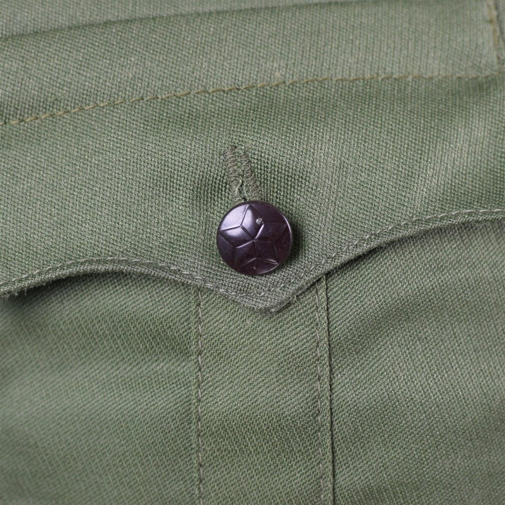 • The deep olive green color reflects its military origins while offering a versatile look that suits various outfits. Made from strong, breathable fabric, this shirt ensures all-day comfort. The button-up front provides a secure fit, while the structured collar adds a sharp, professional touch. Buttoned cuffs allow for an adjustable fit, making it adaptable for different weather conditions.