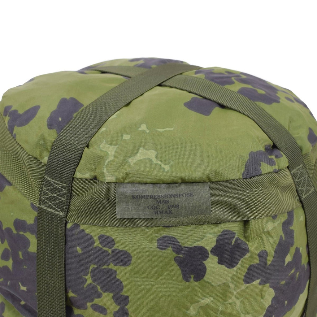 - The Original Danish Military Compression Bag M84 Camo PU Coated Lightweight Duffel Bag is not only practical but also exudes a sense of adventure and style. Its camouflage print pays homage to its military origins, while the high-quality synthetics fabric ensures durability and longevity.
