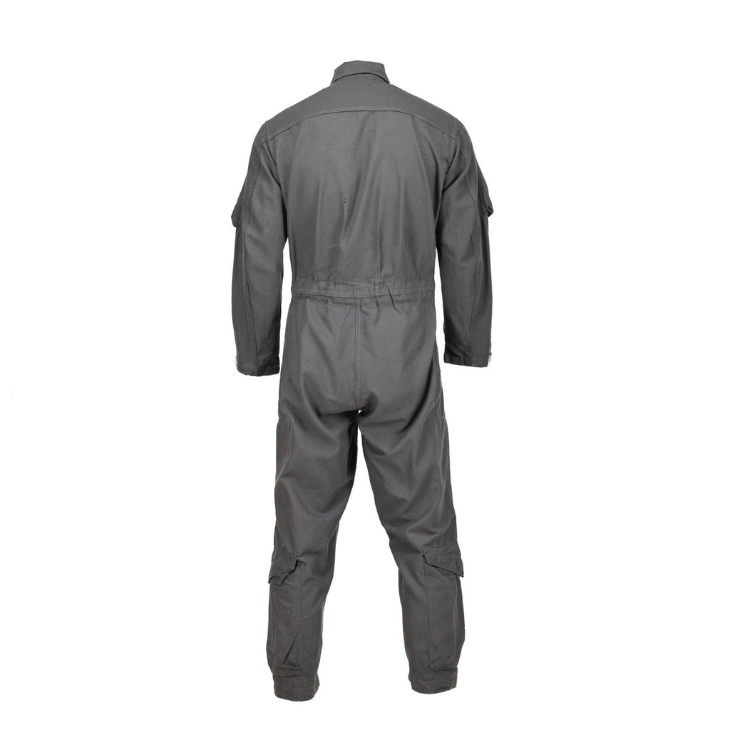 The Netherlands Military Air Forces Coverall is a one-piece jumpsuit designed for use by personnel in the Netherlands Military Air Forces. It is made from a fire-resistant Nomex material and is typically worn over other clothing for protection against heat and flames. The coverall is gray in color and features a front zipper closure, multiple pockets, and reinforced areas at the knees and elbows for added durability. It is designed to be lightweight, comfortable, and practical for use in a variety of situations, including aircraft maintenance, aircraft loading, and other ground support duties.
