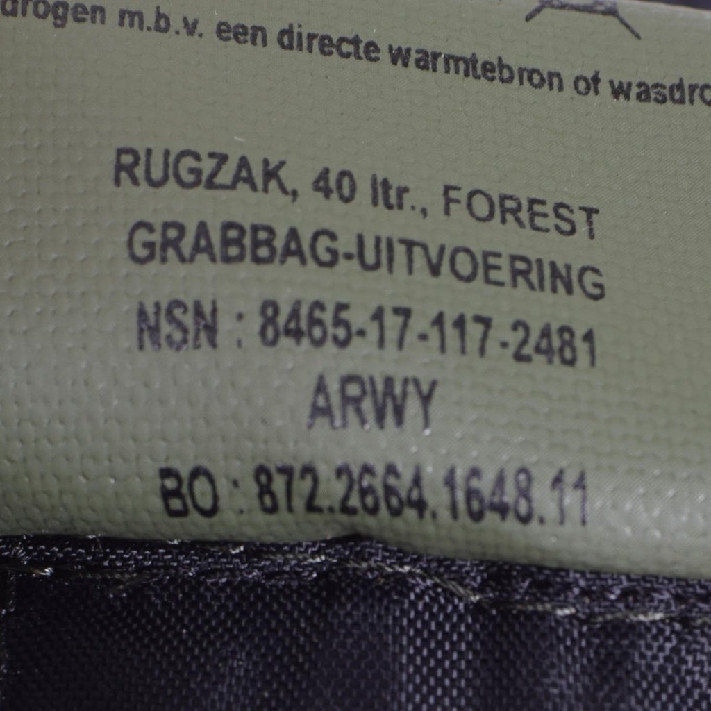 - The Dutch Army Issue Woodland Daypack offers a 40-liter capacity, providing ample space to carry your essential equipment. Quick-release buckles make accessing your gear quick and easy. The hip belt offers support, helping distribute weight for more comfort, especially on long treks. Padded shoulder straps reduce pressure and increase comfort during extended wear.