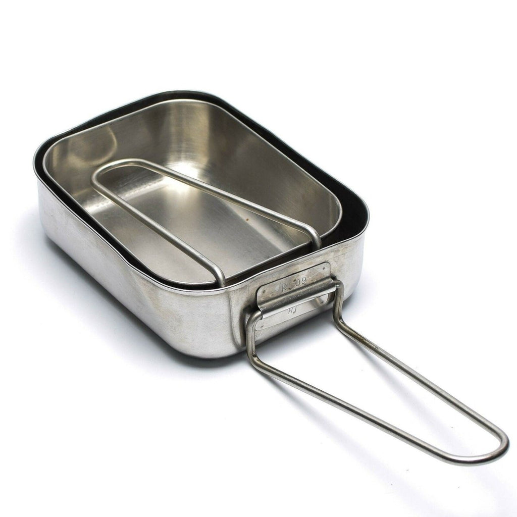 The Original Dutch Military stainless steel mess kit is an essential piece of outdoor cookware for military enthusiasts, campers, and survivalists.