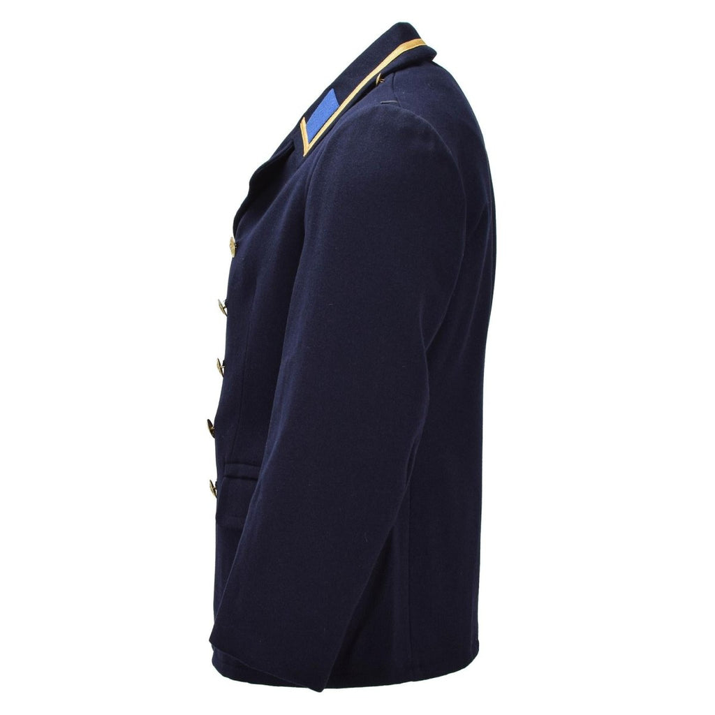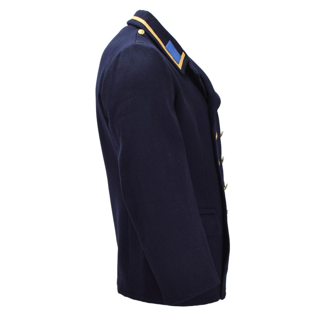 Made in a classic dark blue color, the greatcoat features a traditional double-breasted front with metal buttons, structured shoulders, and a long cut designed to provide warmth and protection in cold weather. The heavy outer fabric and formal military tailoring make it suitable for parade use, service wear, or ceremonial occasions.