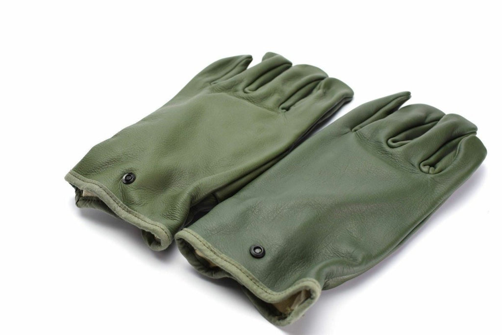 Original French Military Combat Leather Gloves Olive