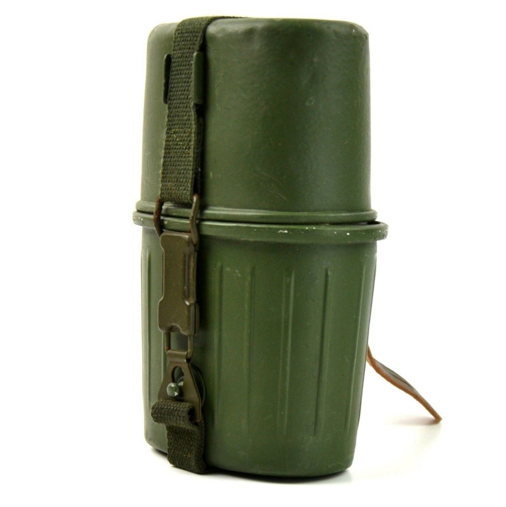 Prepare for reliable field use with this authentic Military Canteen with Cup from the German Army. This Original German Army Mess Kit Canteen Set combines hydration and basic cooking in one compact system. Soldiers designed it for efficiency in demanding outdoor conditions.