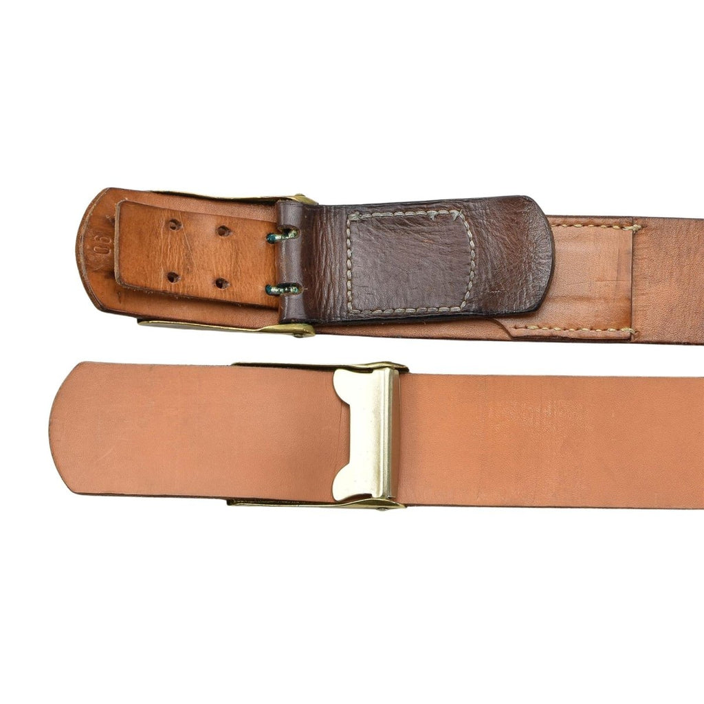 The East German leather belt offers a perfect blend of style, durability, and authenticity. This black leather belt is an original military issue from the German army navy. Its timeless design features a box buckle that ensures a secure and reliable fit, whether you're wearing it for everyday use or as part of a military-inspired outfit.