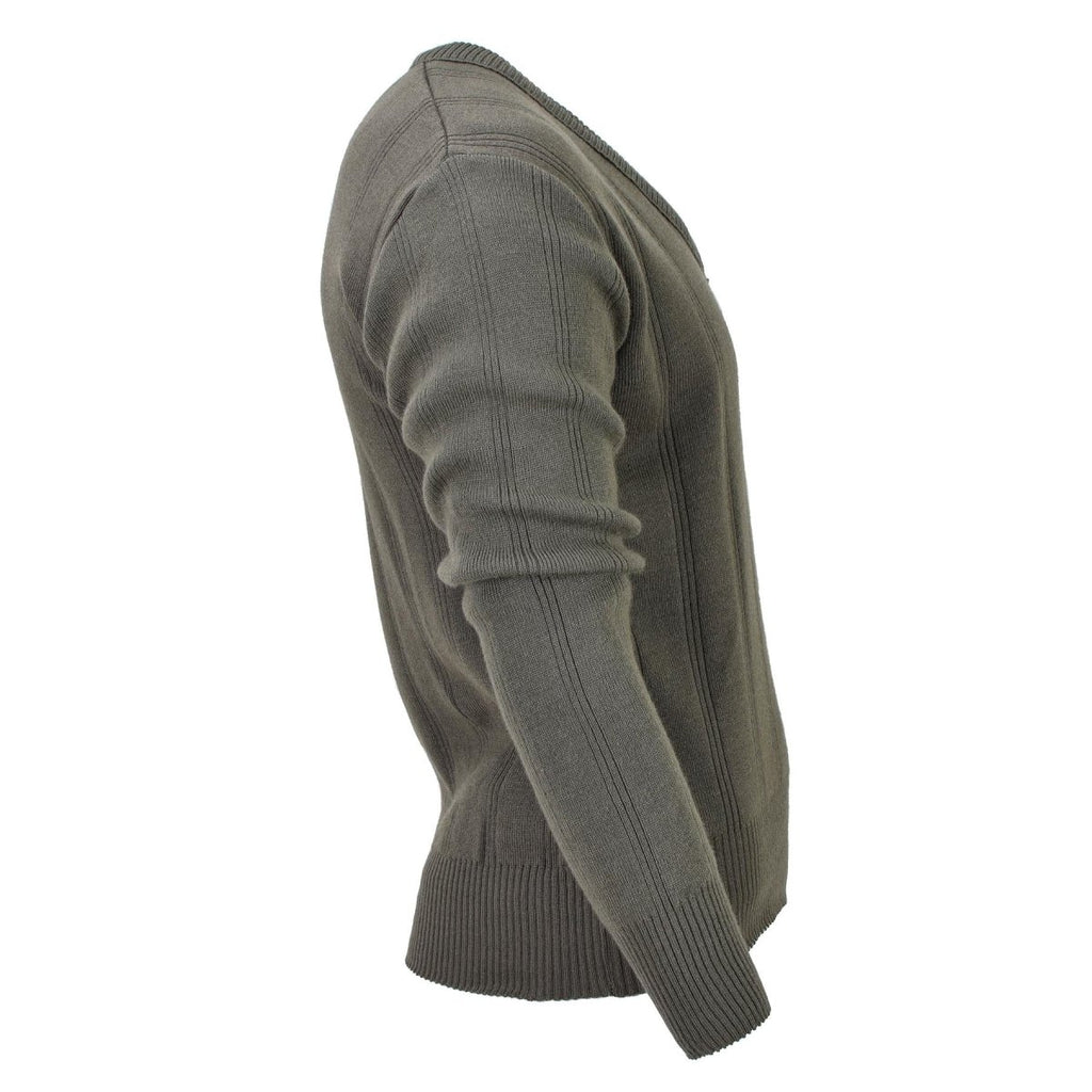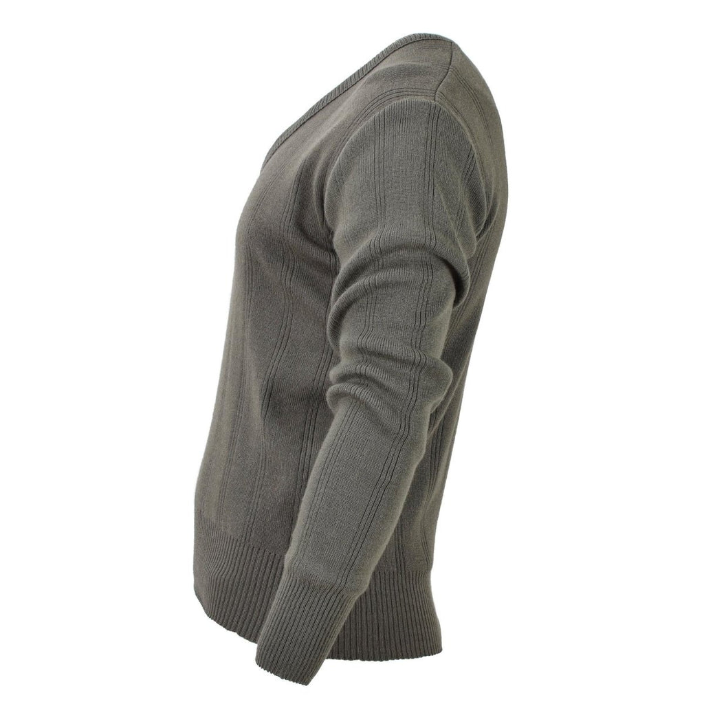 • Crafted meticulously from high-quality wool. This grey sweater features a distinguished V-neckline that adds an element of sophistication to any attire. Its rib-knitted cuffs and waistline not only ensure a secure fit but also provide warmth during chilly weather. Making it an ideal choice for various seasons.