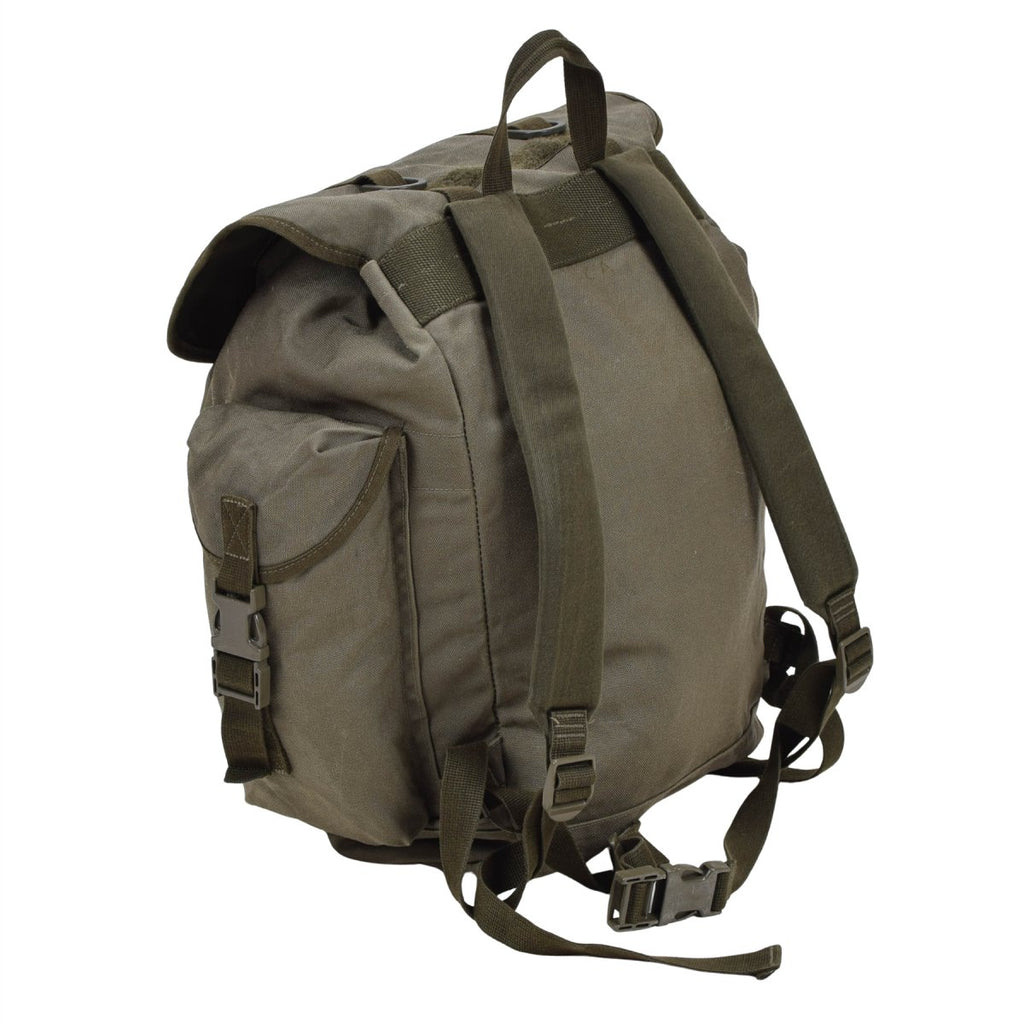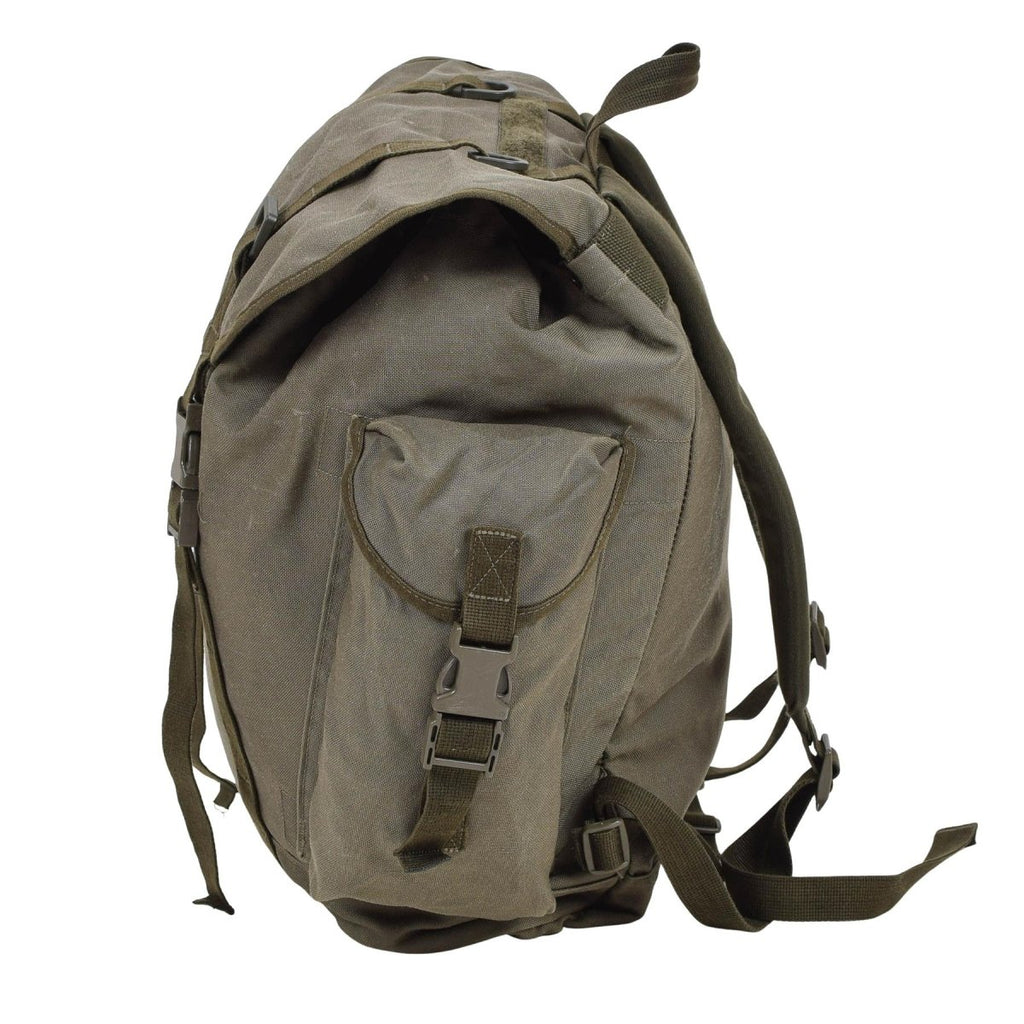 In addition, adjustable shoulder straps improve comfort and load stability. The backpack sits securely during hiking, trekking, or long walks. The classic olive drab color preserves its authentic military appearance and blends well with outdoor environments. Issued for use by the Bundeswehr, the design reflects practical military standards rather than civilian trends.