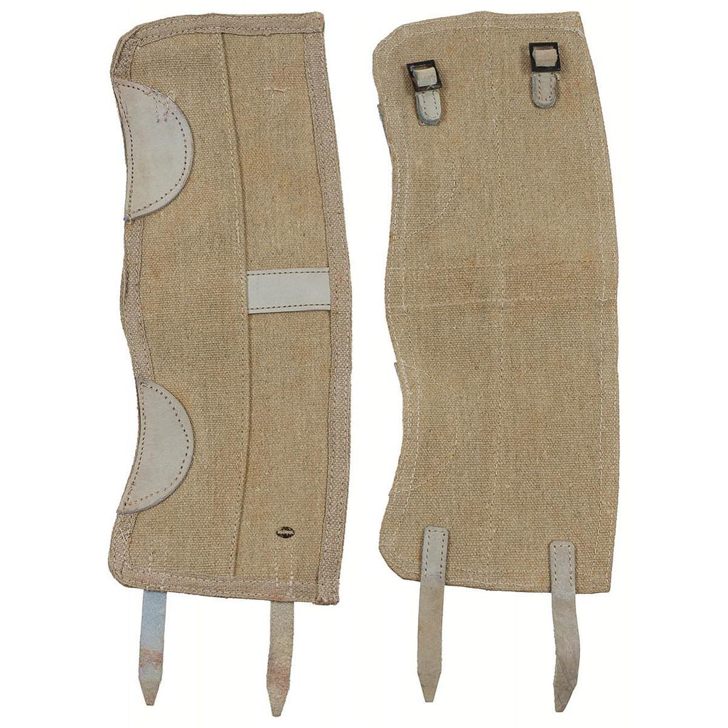 Original Italian military surplus gaiters made from durable canvas material. Designed to be worn over boots and lower legs, these gaiters provide effective protection against dirt, mud, moisture, and debris in outdoor environments.